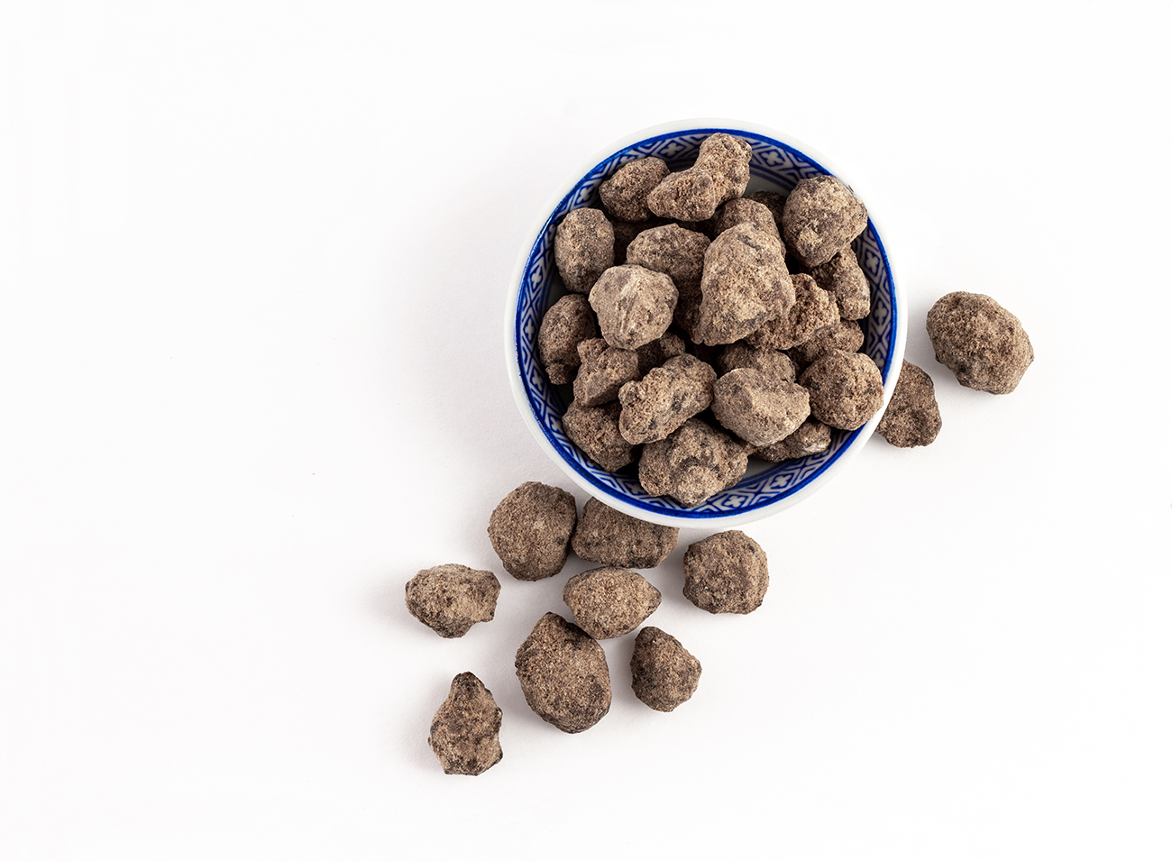 Okinawa black sugar has been around since the 17th century in Okinawa prefecture. Black sugar is slightly more unrefined in comparison to brown sugar, which is often a mix of molasses syrup and white sugar. It is made by boiling sugar until it becomes black syrup. The syrup is then made to cool until it becomes hard and dry, and formed into a block. The blocks of sugar are a deep brown-black color and when broken into smaller pieces, appear much lighter. Okinawa black sugar is popularly used to enhance the flavor of milk tea, mochi, cake desserts, and sweet soups. Black sugar is also crushed and used to dust sweets.