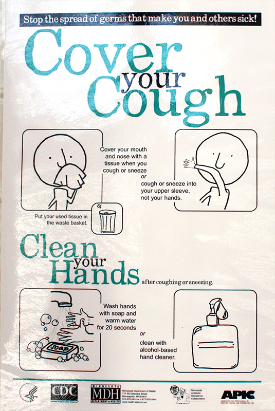 Cover your mouth and nose with a handkerchief, bent elbow, or tissue when you cough or sneeze. Dispose of the tissue immediately when you are done. You may also use a face mask that prevents the droplets from reaching and possibly infecting other people around you.