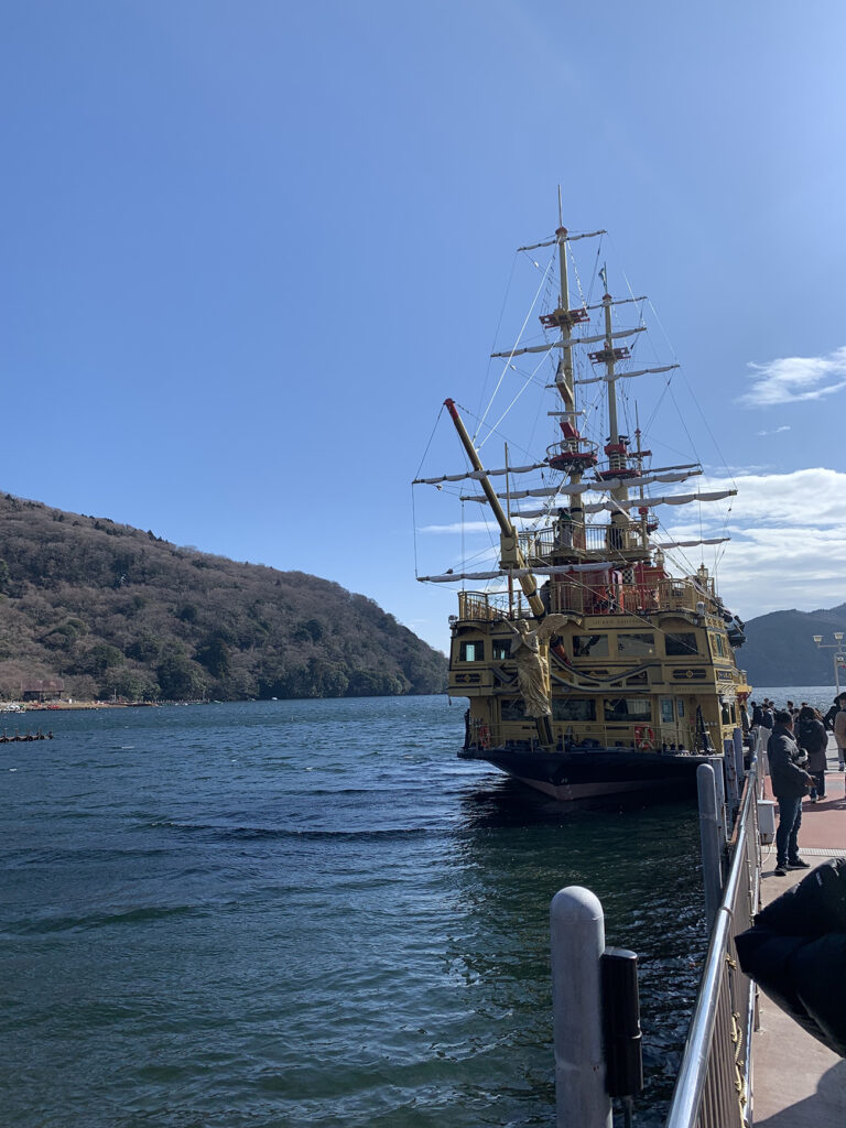 After Owakudani, we headed to Lake Ashi. The Hakone Freepass gives you free access to the Hakone Sightseeing Cruise, a pirate ship that takes you across the lake.
